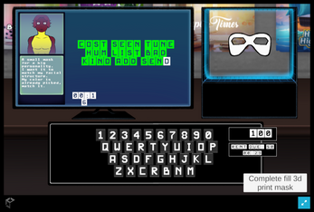 Instructions: This is a typing game. As soon as you pick the size and shape, there will be a timer to finish printing the mask. Follow the client's instructions and you might get enough credits to pay rent for another day.